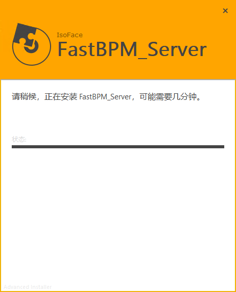 安装过程将持续一段时间,安装完成后,显示下图页面,点击[完成(F)]按钮,结束FastBPM安装程序。