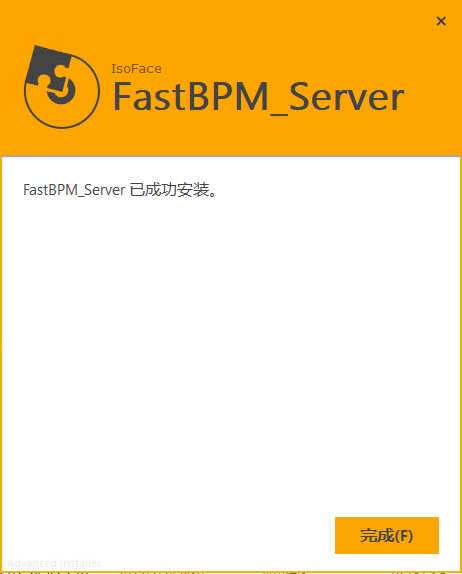安装过程将持续一段时间,安装完成后,显示下图页面,点击[完成(F)]按钮,结束FastBPM服务端安装程序。