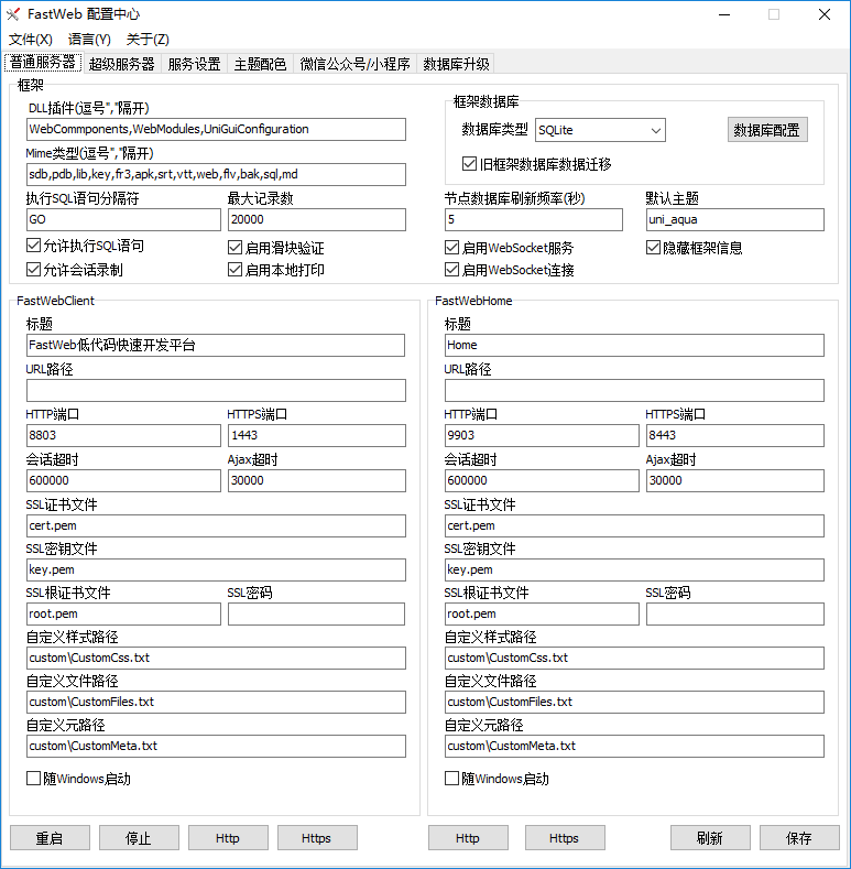 - Home(Https):在浏览器中打开FastWebHome的Https端口。
