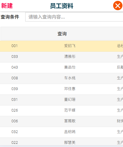 [基础资料]-[员工资料],打开员工资料画面,在员工资料画面中,可在查询条件中输入员工信息进行快速查询。