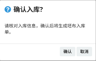 坯布规格/坯布门幅/坯布克重/入库件数/入库数量等,填写完成后,点击[确认入库],