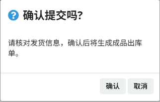 当弹出下方提示时,表示成品出库单据已新增并审核。