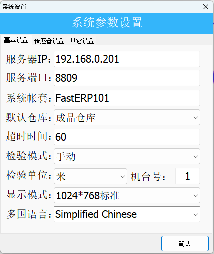 双击下方FastERP处,出现输入管理员密码的界面,在此处输入管理员密码,按[确认]按钮以打开系统参数设置界面。