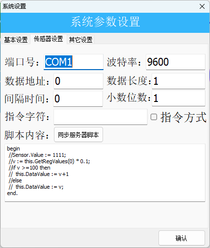 在传感器设置中,由于读取的数据不包含小数位,故在公式中需将通过小数位相乘来将实际值修改为计数器显示的数值。