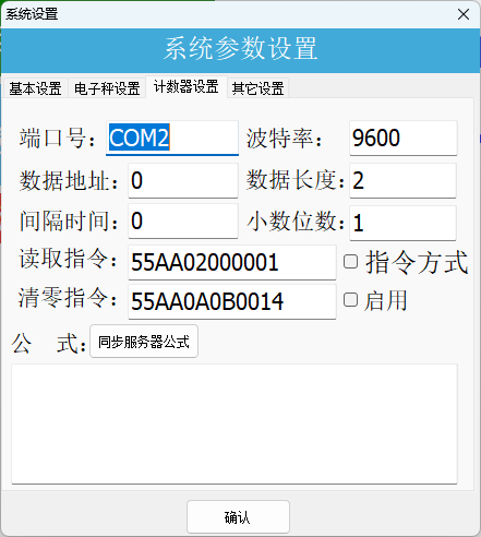 在计数器设置中指定计数器的端口通讯协议,可通过串口通讯的方式设定读取指令,以实现自定义解析功能。