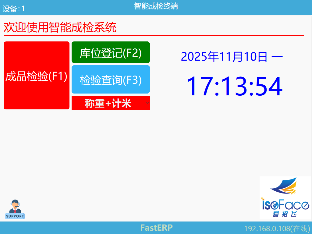 通常情况下,在此次重启完成后会自动进入到成品检验终端程序的主界面,可点击[成品检验(F1)]进入到检验的主界面中,查看计数器的数值是否能正确读取。